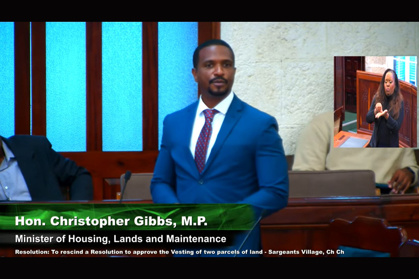 In his opening remarks, Gibbs told the House: “Today, I rise to correct our records; provide legal clarity and advance our housing agenda. We are asking this honourable House to rescind Resolution No. 17, 2022, and second, to approve an amended resolution to vest two parcels of land totalling 7 021 square metres situated at Sargeant’s Village, Christ Church, in the NHC for the purpose of a housing development.”